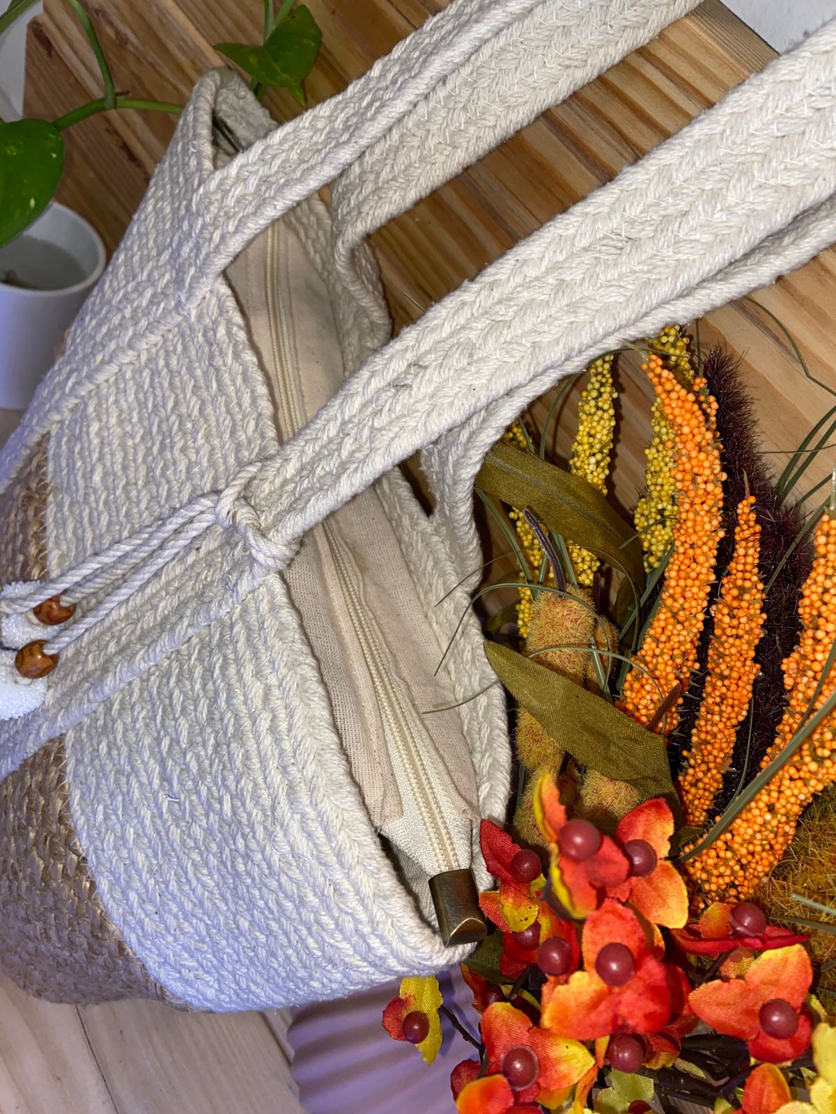 Multipurpose Natural Jute & Cotton Handcrafted Handbag/ Women, Grocery Shopping.